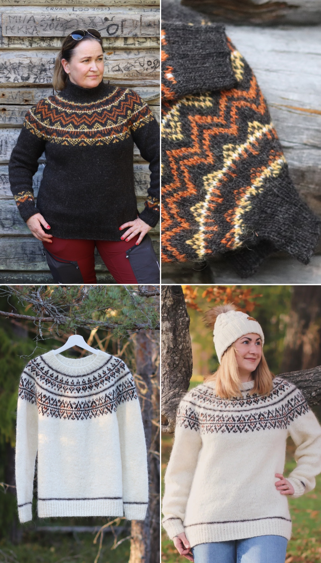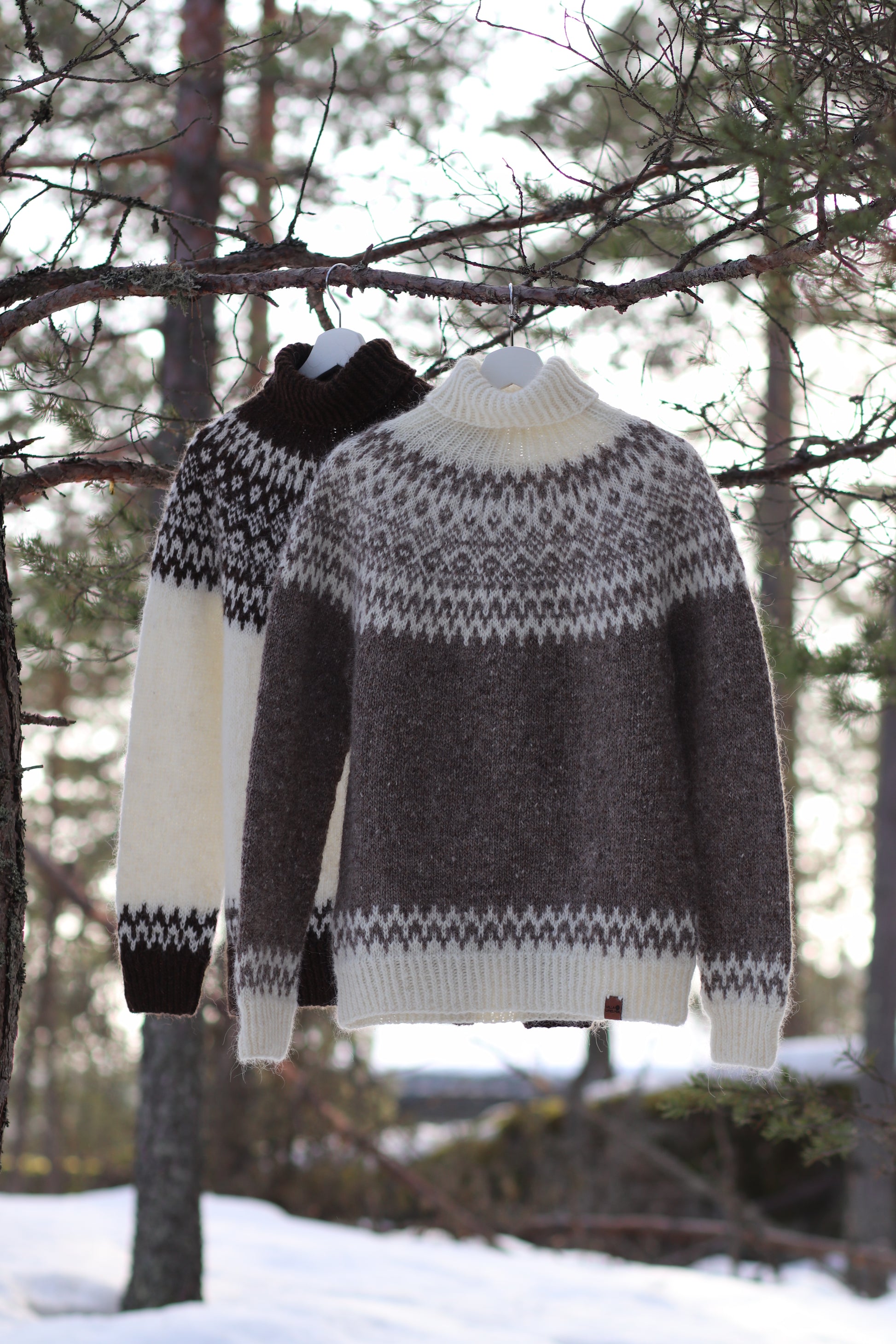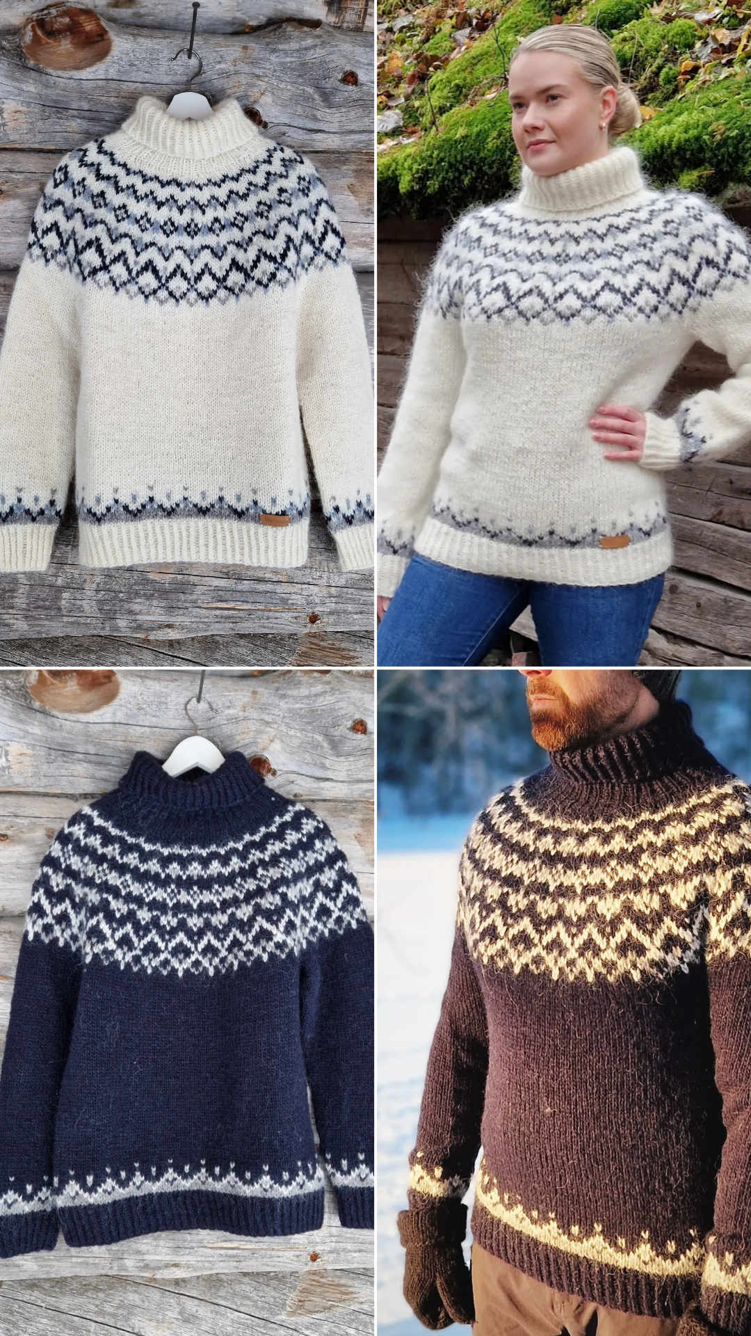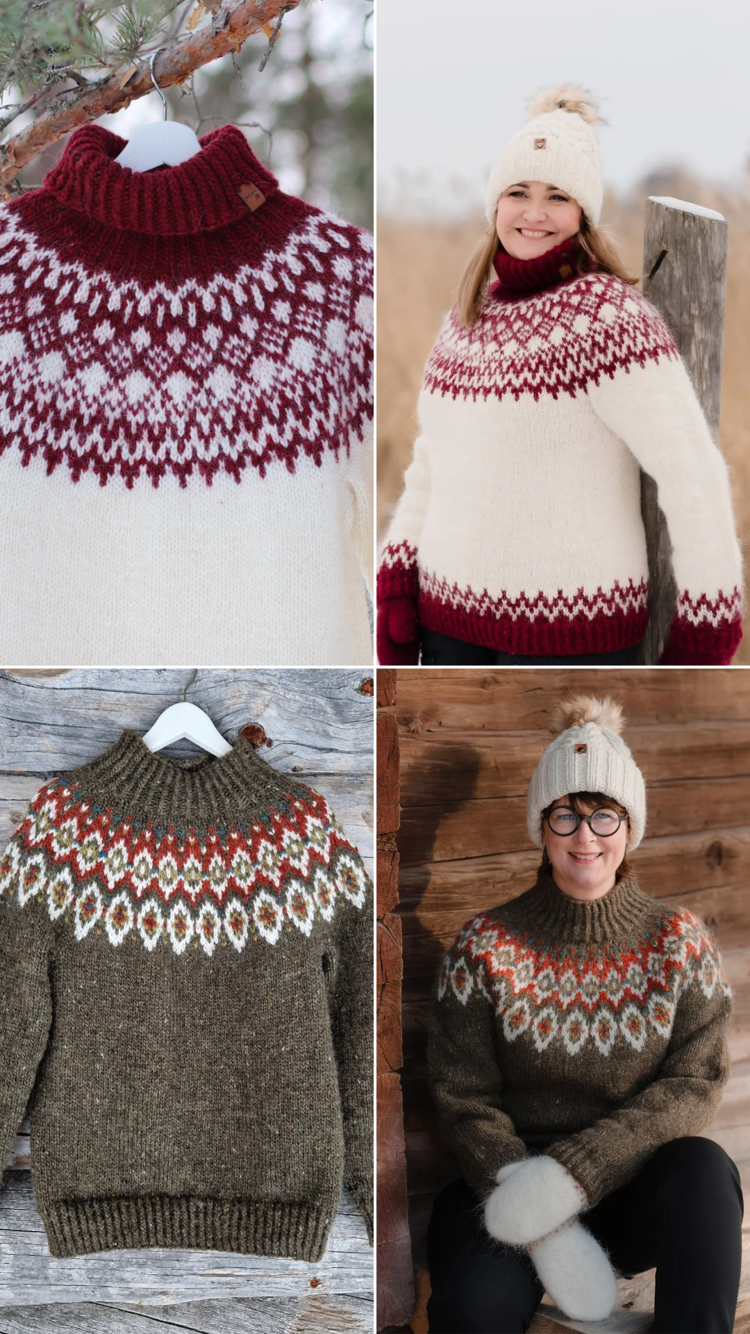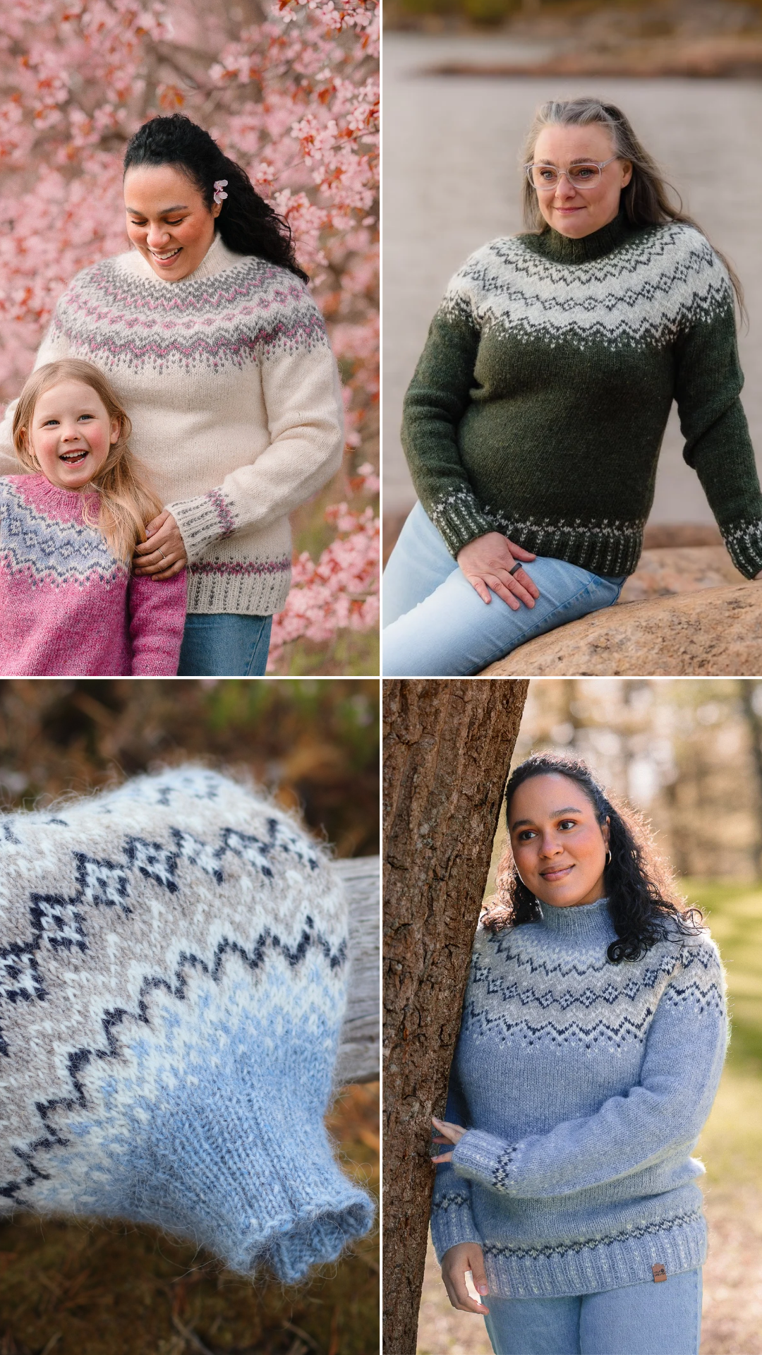 Kaikka neuleet neulotta Alafosslopi tai Lettlopi langoista. Neuleet uusia ja käyttämättömiä.