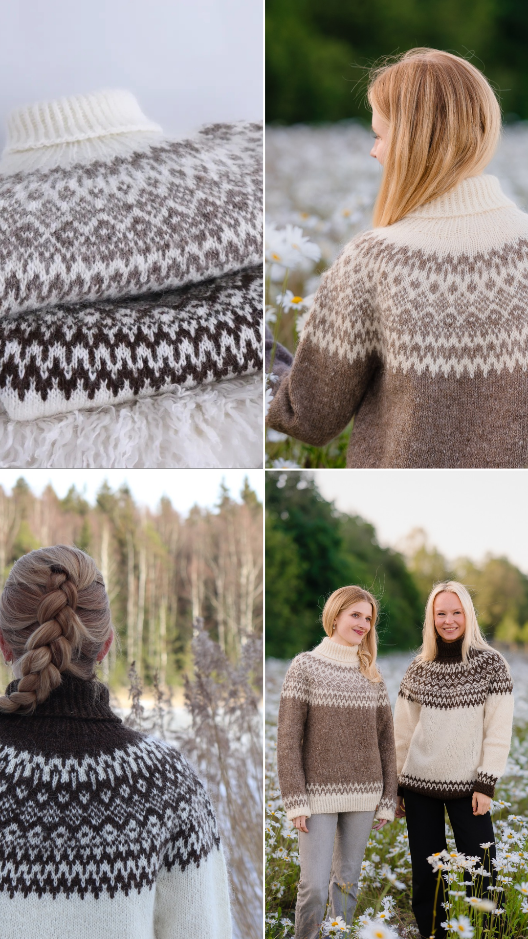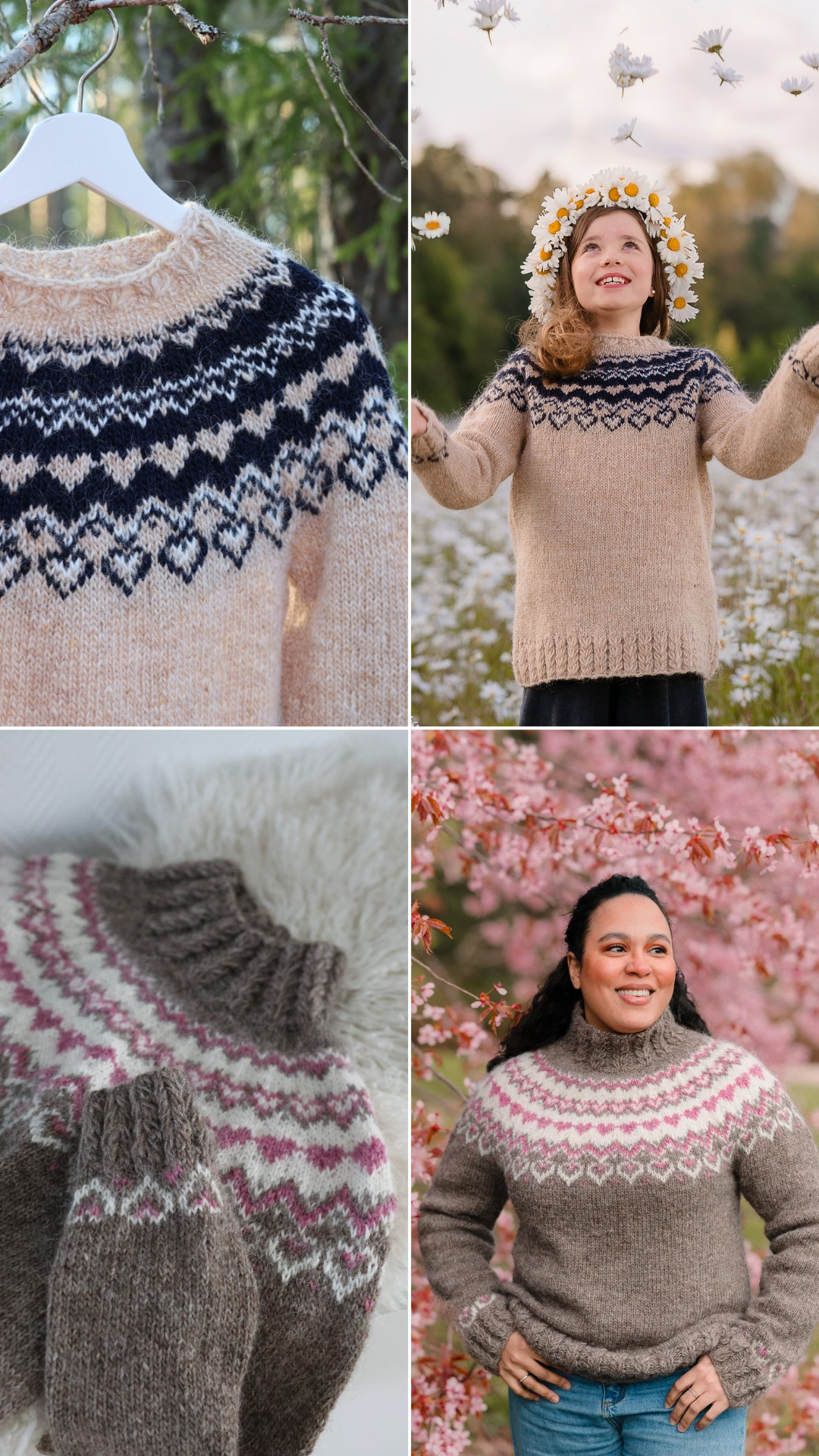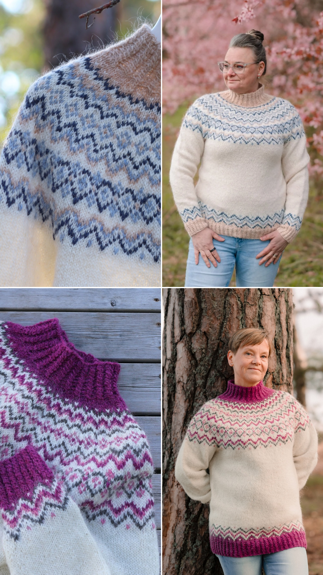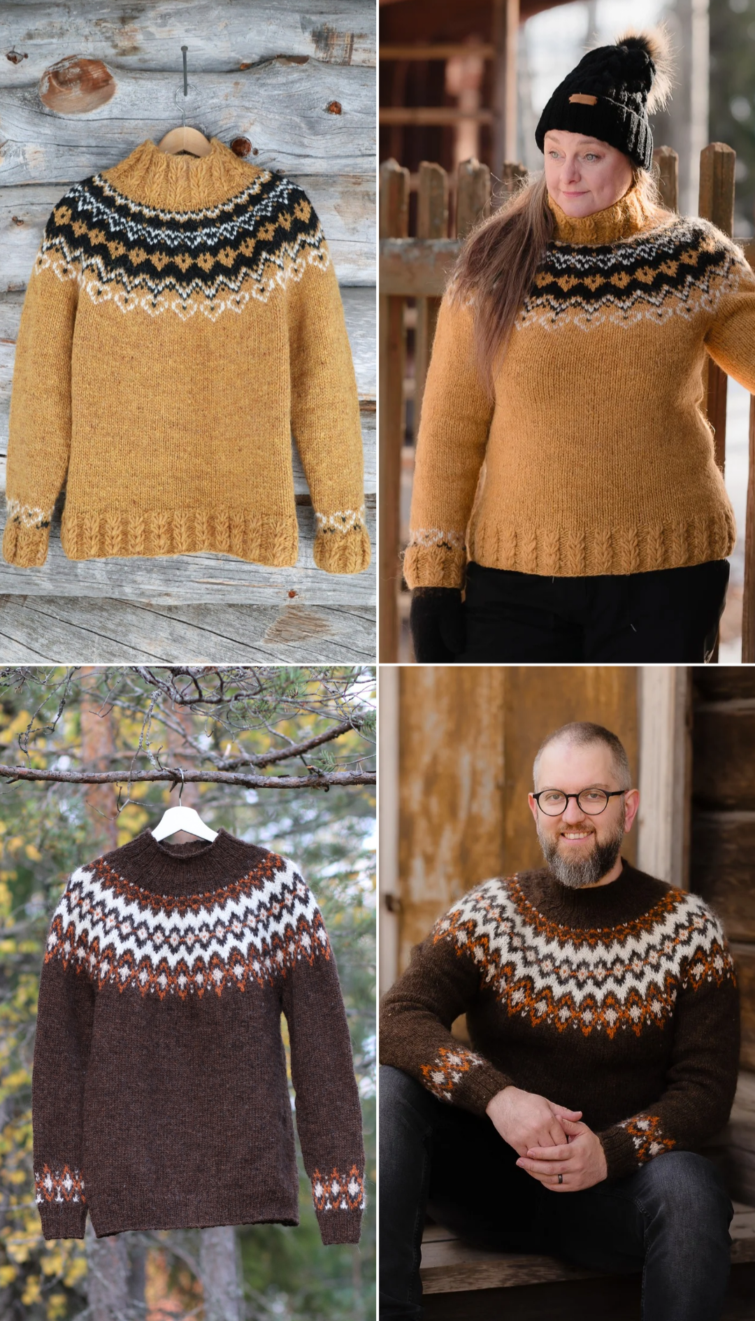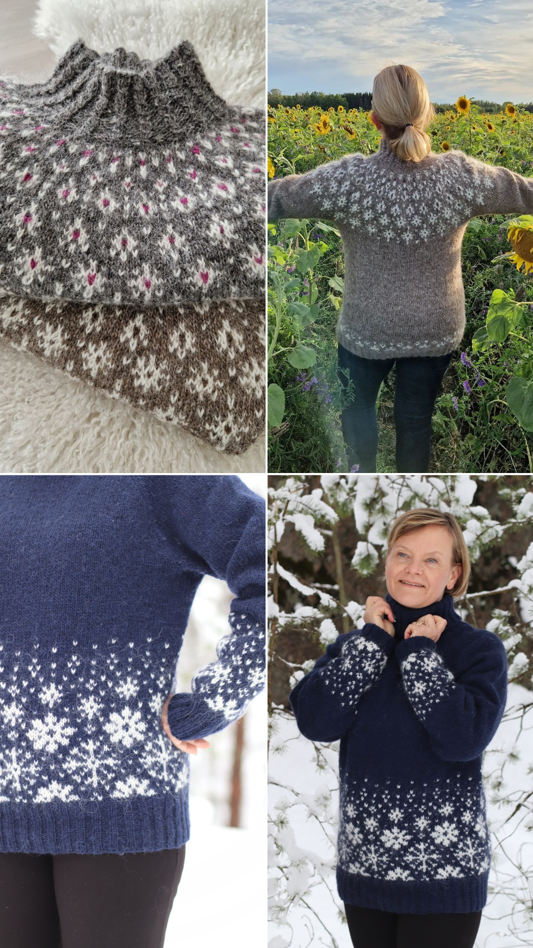 Kaikka neuleet neulotta Alafosslopi tai Lettlopi langoista. Neuleet uusia ja käyttämättömiä.