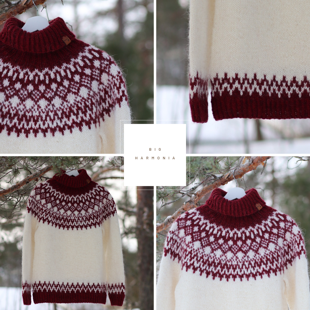 Big Harmonia on Harmonia neuleperheen lämpimin malli, ja se sopii hyvin vasta-alkajille, mutta kokeneemmillekin neulojille. Malli on helppo neulottava, eikä siinä ole pitkiä langanjuoksuja. Big Harmonia neulotaan kahdella värillä.