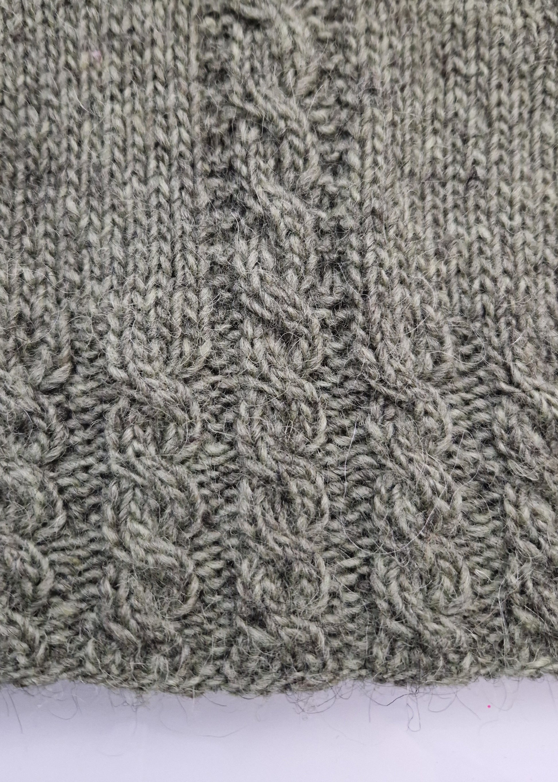Neuletiheys: 18 silmukkaa x 24kerrosta = 10 x 10 cm sileäneulosta puikoilla 4.5 mm